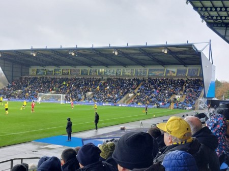 I’d arrived in sufficient time to catch the end of the Coventry game on the concourse telly and got myself a steak and ale pie and a coffee. By chance I was wearing a yellowish jumper, which helped me blend in with the home fans, but as an old bloke who says little anyway, I wasn’t worried about being outed as a Boro fan.