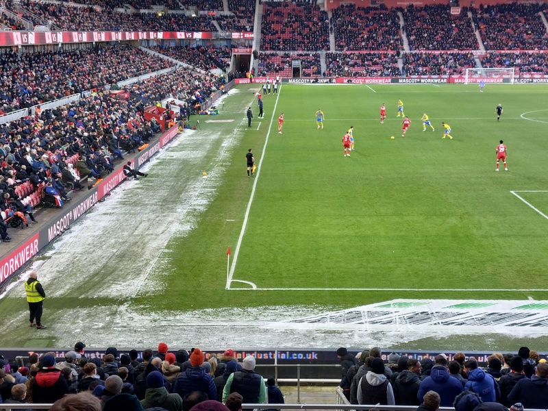 It was no warmer walking to the Riverside, but as ever, there was someone wearing shorts. Harry suspected that he must be a postman and that may very well be the case. We met Tom and Murgy at the fanzone where there were far fewer people than there usually are. We were served in seconds, whereas there is normally a lengthy queue. Maybe the club need to move into the mulled wine market rather than relying on ice-cold Carling.