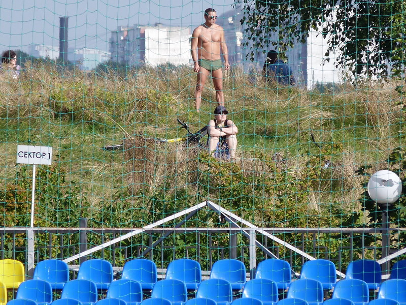 As the first half drew to a close I noticed a bloke in a pair of Speedo’s watching the game from the grassy bank beyond the opposite fence. It’s still reasonably warm in Moscow but he did seem underdressed, even if he wasn’t too far from the river.