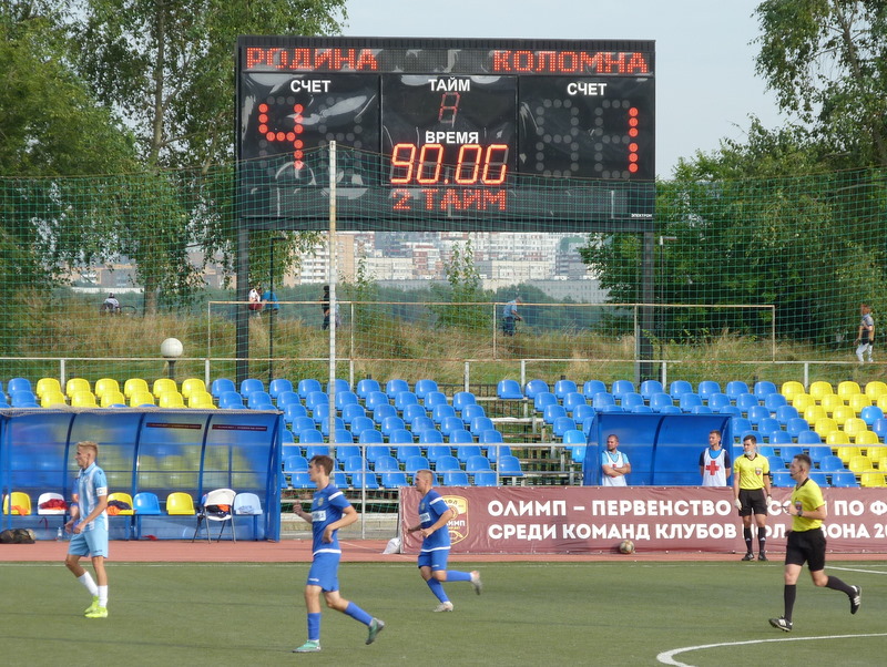Kolomna got their equalizer twenty minutes into the second half when a shot, or more likely a cross, from out on the right eluded everyone on its way into the top corner. There was plenty of cheering from the people around me so whilst I’ve no idea where Kolomna is, they had decent support among the hundred or so spectators in attendance. We briefly had a chanting battle between a family with a toddler to my right and the four young lads to my left.