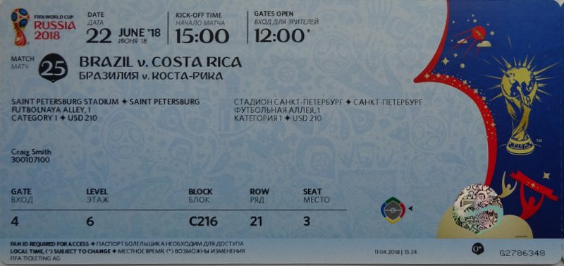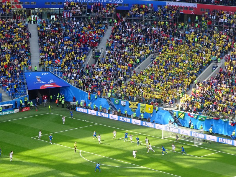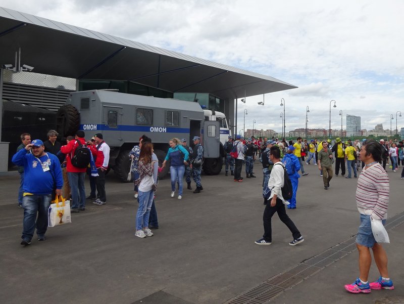 After two hours of walking and with another two to go to kick-off, Paul decided to check that the ground we were walking to and were still more than half an hour away from, really was the World Cup Stadium. Well, what do you know? It wasn’t. We’d just spent two hours walking towards the an old stadium where nobody, least of all the Brazil team, was appearing. The confusion appears to be due to the correct location having a variety of names ranging from the Arena Stadium to the Zenit Stadium by way of the Saint Petersburg Stadium or the Krestovsky Stadium. I’ve a feeling that we had been well on the way to the old Zenit ground rather than the new one. It would have been nice to have seen it, but not, I suppose, at the expense of a World Cup game.