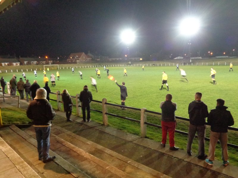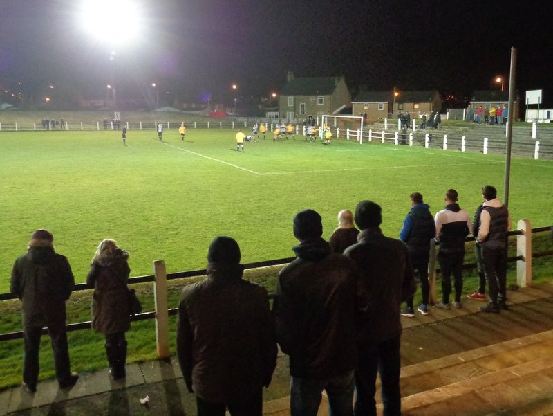 Most of the crowd, which eventually reached 620, were stood around the perimeter pitch fence with others getting a better view from on top of embankments and mud piles. Crook were in amber and black with Ryhope in red and white.
