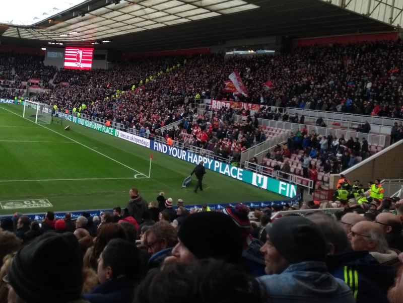 It was seven quid to get in and we settled into the back row of seats behind the goal at the clubhouse end. Henry spent most of the first half sleeping, perking up only if someone carrying a burger or a tray of chips made their way in our direction.