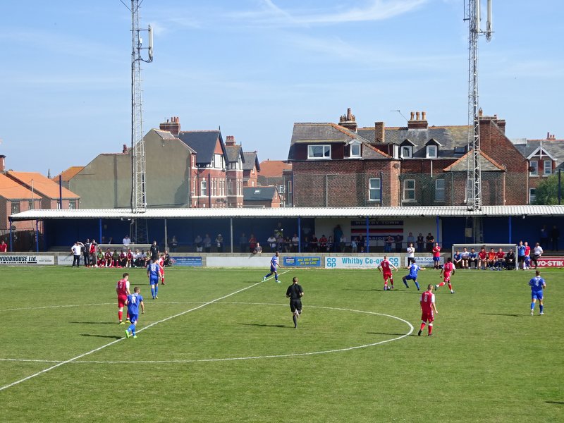 As Harry and I queued to have our tickets scanned he remembered that he had been at Blackwell Meadows before too, playing on the one of their rugby pitches for Billingham a couple of years ago. The ground works well, I think. There’s a covered standing area behind one goal which, if not quite enclosed enough to make it reminiscent of The Shed at Feethams, did the job in providing a home singing end.