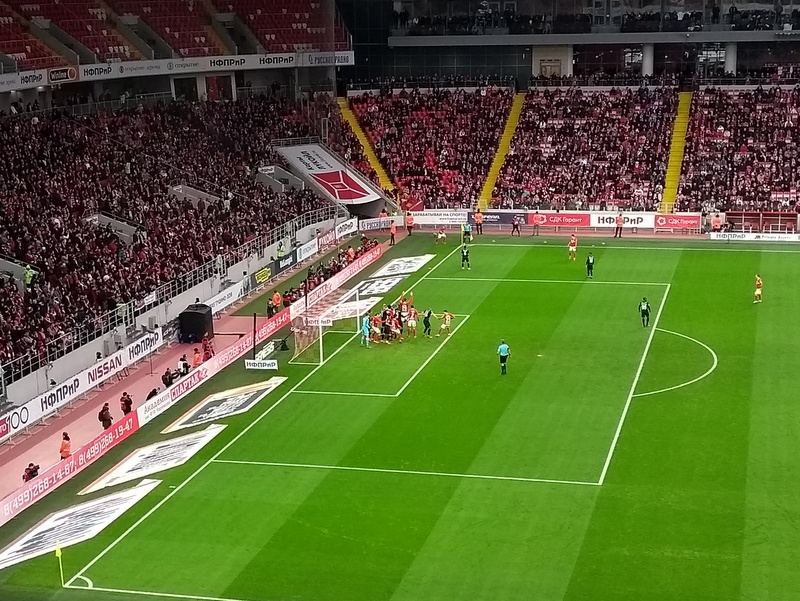 My move also enabled me to observe the away fans to my left. They were required, as is the custom in Russian grounds, to watch the match through a fence. I’ve not seen any trouble yet at any game that I’ve been to so it all seemed quite unnecessary to me.
