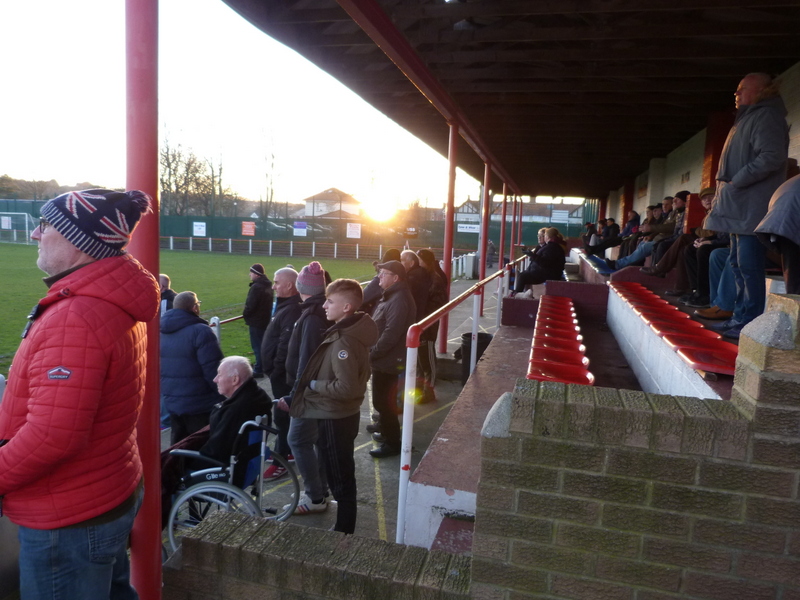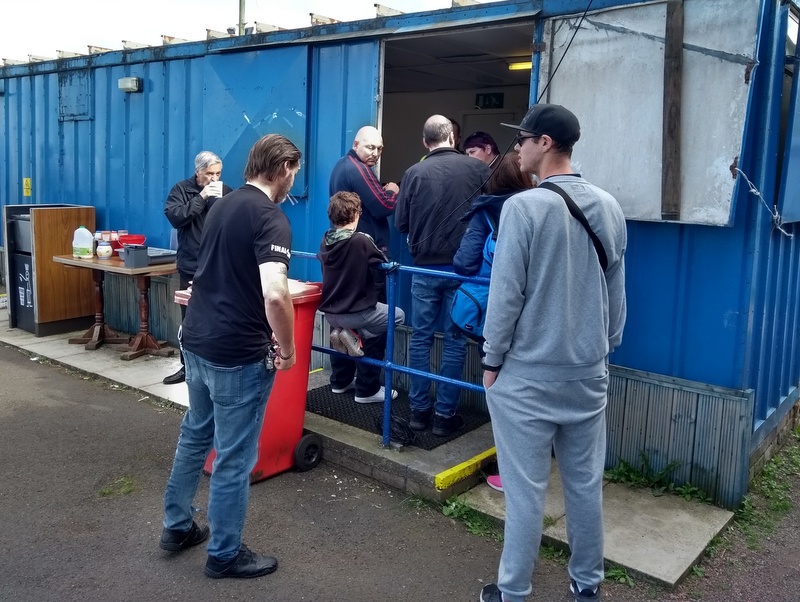 The game was well attended with 241 turning out. Some were in a covered standing area on the opposite side to us, whilst a few braved the light rain and leaned on the perimeter fence. There were lots of kids making the most of the remaining school holidays with many of them being looked after by dads who were enjoying the rare combination of having a pint and watching football whilst carrying out childcare duties.