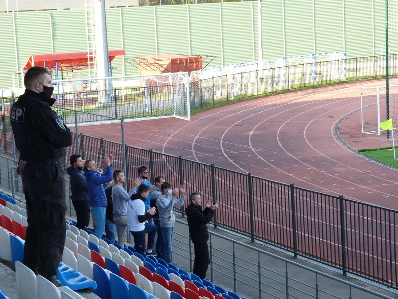 On arrival at the Smena Stadium we joined the queue for free tickets, then the queues to get in and finally the queues for scanning. Jen got turned back in order to deposit her backpack in the left luggage store whilst I got asked to switch on both my phone and camera. It was stricter than an airport and all for a game in the third-tier game with no more than a few hundred attendees.